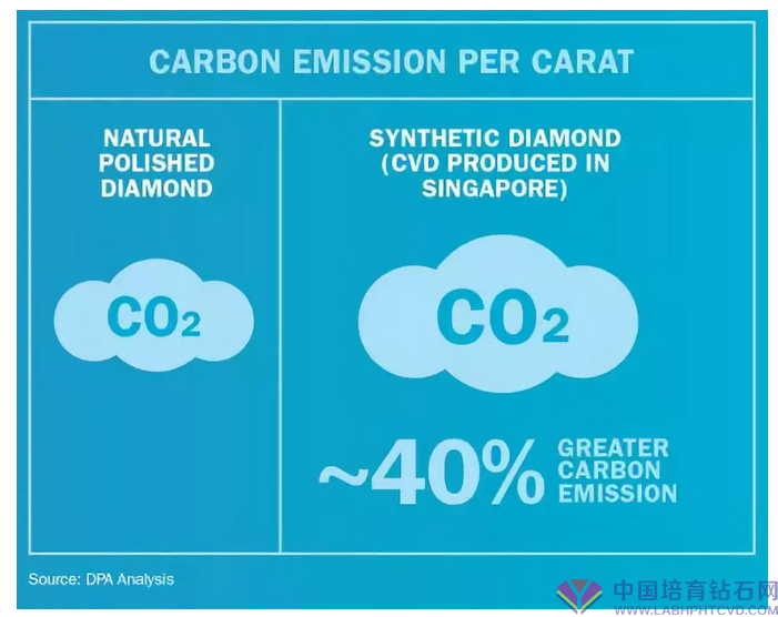 生产制造人工合成人造钻石的二氧化碳排放超出纯天然人造钻石